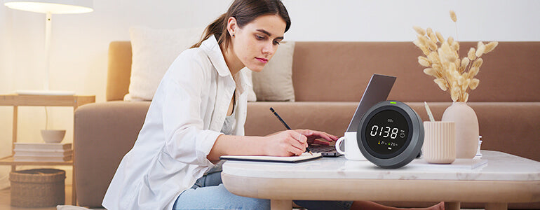 Carefor CF-20 Luftqualitätsdetektor verwendet Lasersensoren, um eine Vielzahl von Verschmutzungsfaktoren, wie PM2.5, PM10, CO2, HCHO, TVOC, Temperatur und Luftfeuchtigkeit genau zu erkennen. Das Gerät verfügt über eine Datenloggerfunktion, mit der Sie bis zu 15 Tage lang Messwerte aufzeichnen und Datenberichte auf Ihren PC exportieren können. Es ist sehr hilfreich, um historische Daten zu analysieren.